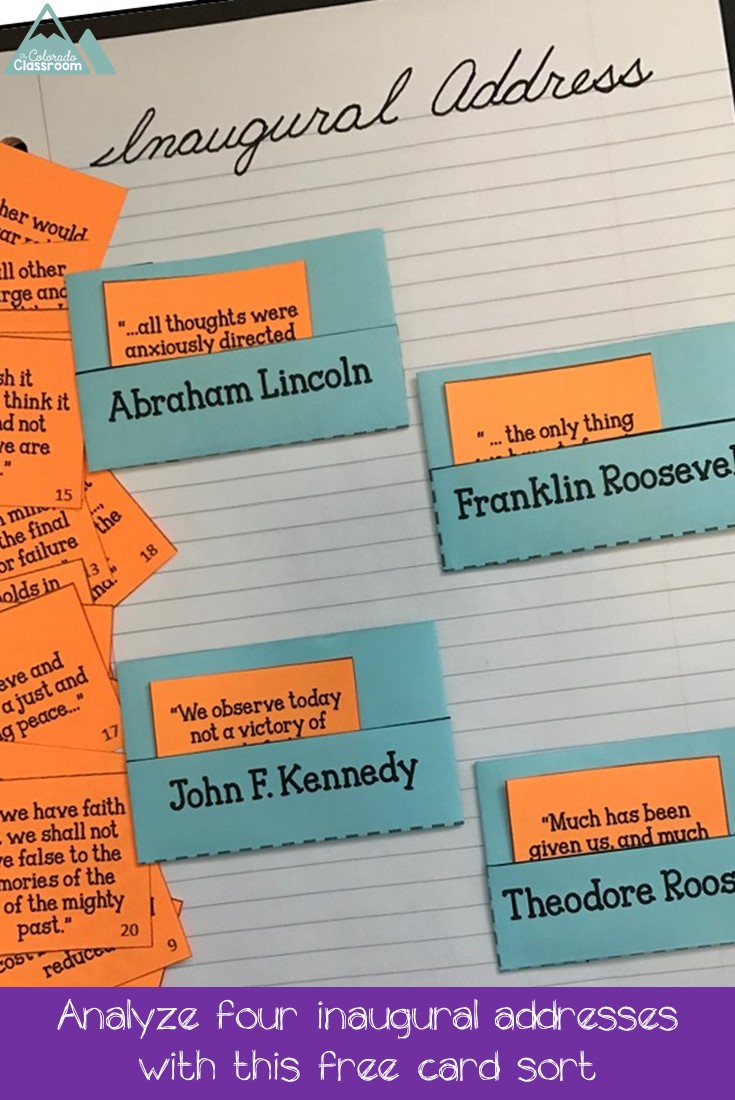 In the creation of my resource, I tried to honor both purposes by creating an Inaugural Address Card Sort, which allows you to take four Inaugural Addresses considered to be the greatest of all time and evaluate them for their content and the words spoken in that day. Evaluate, categorize, and then discuss who said, “With malice toward none, with charity for all, …” See if you can determine who would have claimed, “We wish it because we think it is right and not because we are afraid.” It’s kindness and truthfulness on a whole different level, and one your high schoolers might enjoy as a special twist come this Inauguration Day.